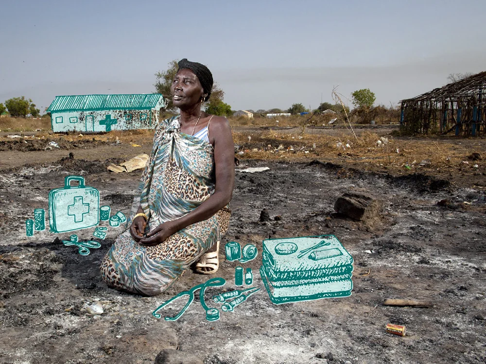 For the 2013 Holiday Gift Catalog, I illustrated the items that can be donated over photos from developing countries, showing both the need and the outcome.