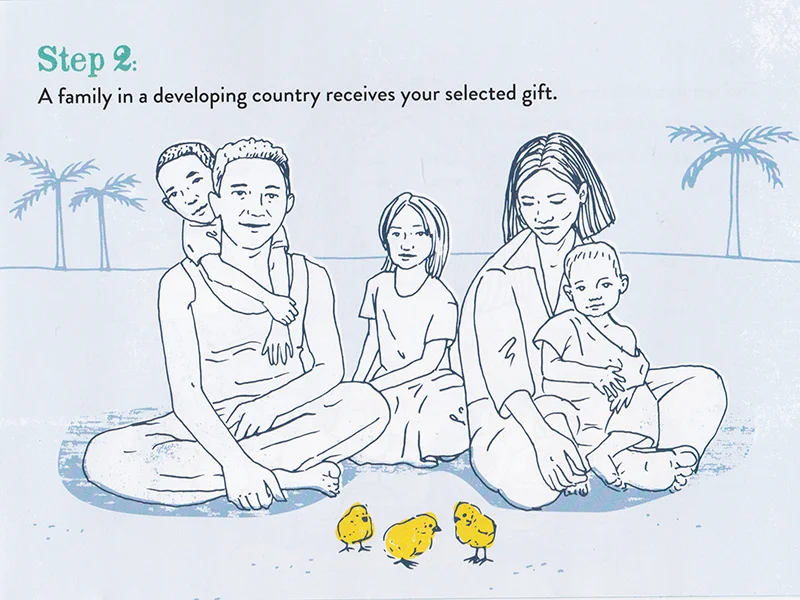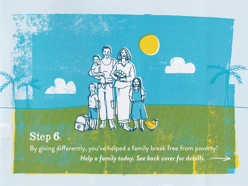 Plan International approached me for some illustration work for their Holiday 2013 "Gifts of Hope" catalog, including this small insert booklet that shows how your donation impacts those in need.