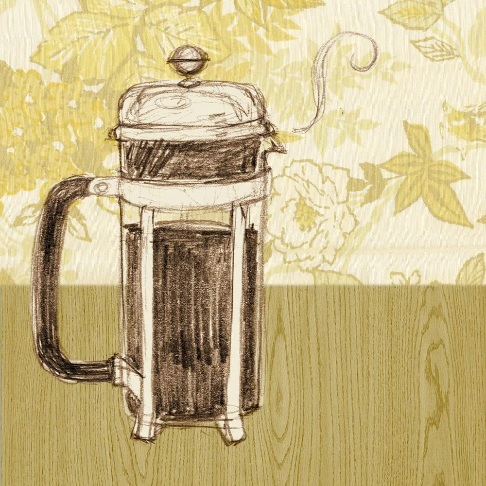 Another in the series of Thankful Drawings, our little french press with hot coffee. I sometimes go to sleep thinking about the coffee I'll get to drink the next morning. My sweet husband (an early bird) gets up first each morning and makes coffee for me, while I (the night owl) slowly drag myself out of bed. So this coffee is a daily reminder of his love for me.