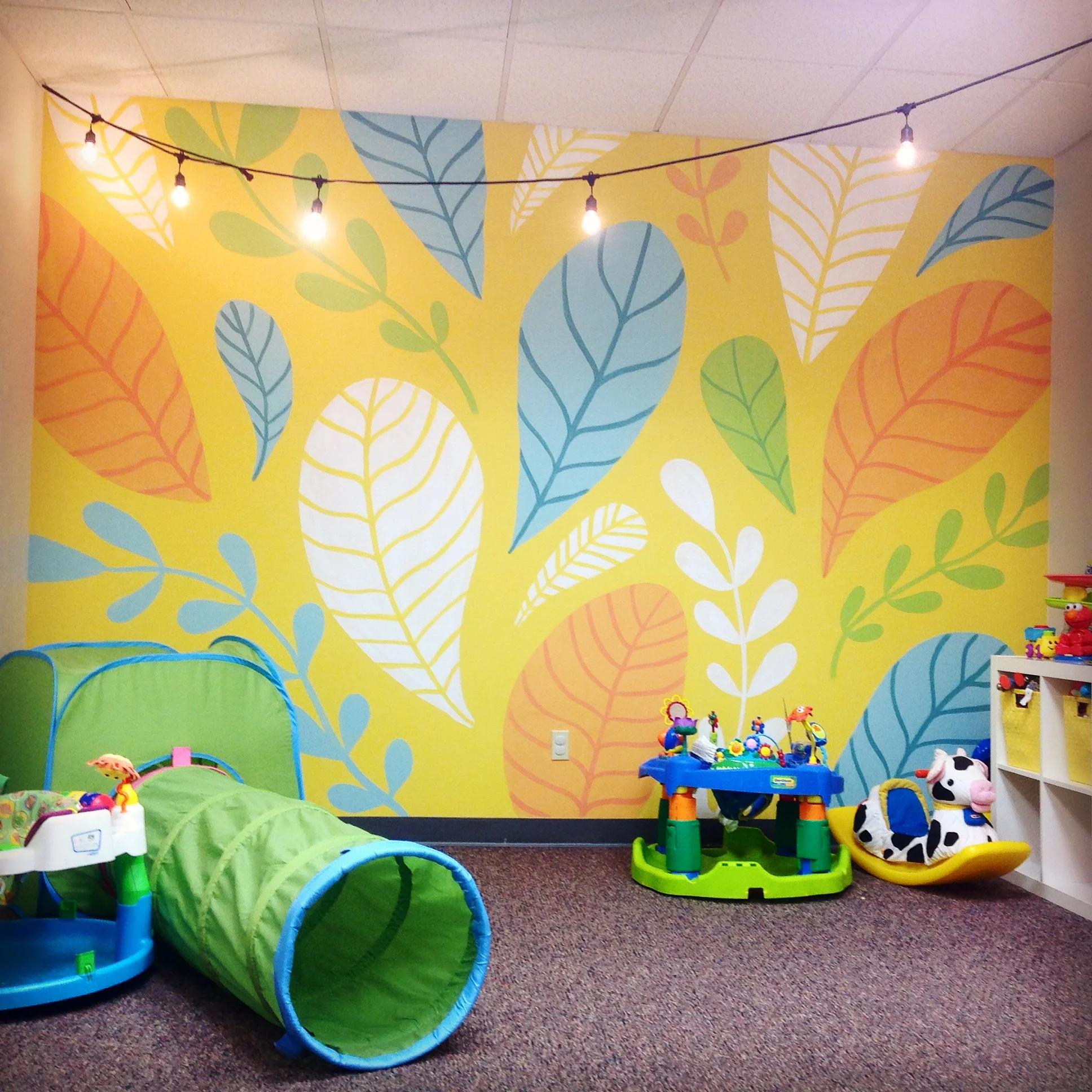 I painted a leafy-feathered mural in the Nest, the nursery room at Renaissance Church. It feels good to use these bright colors and bold shapes.